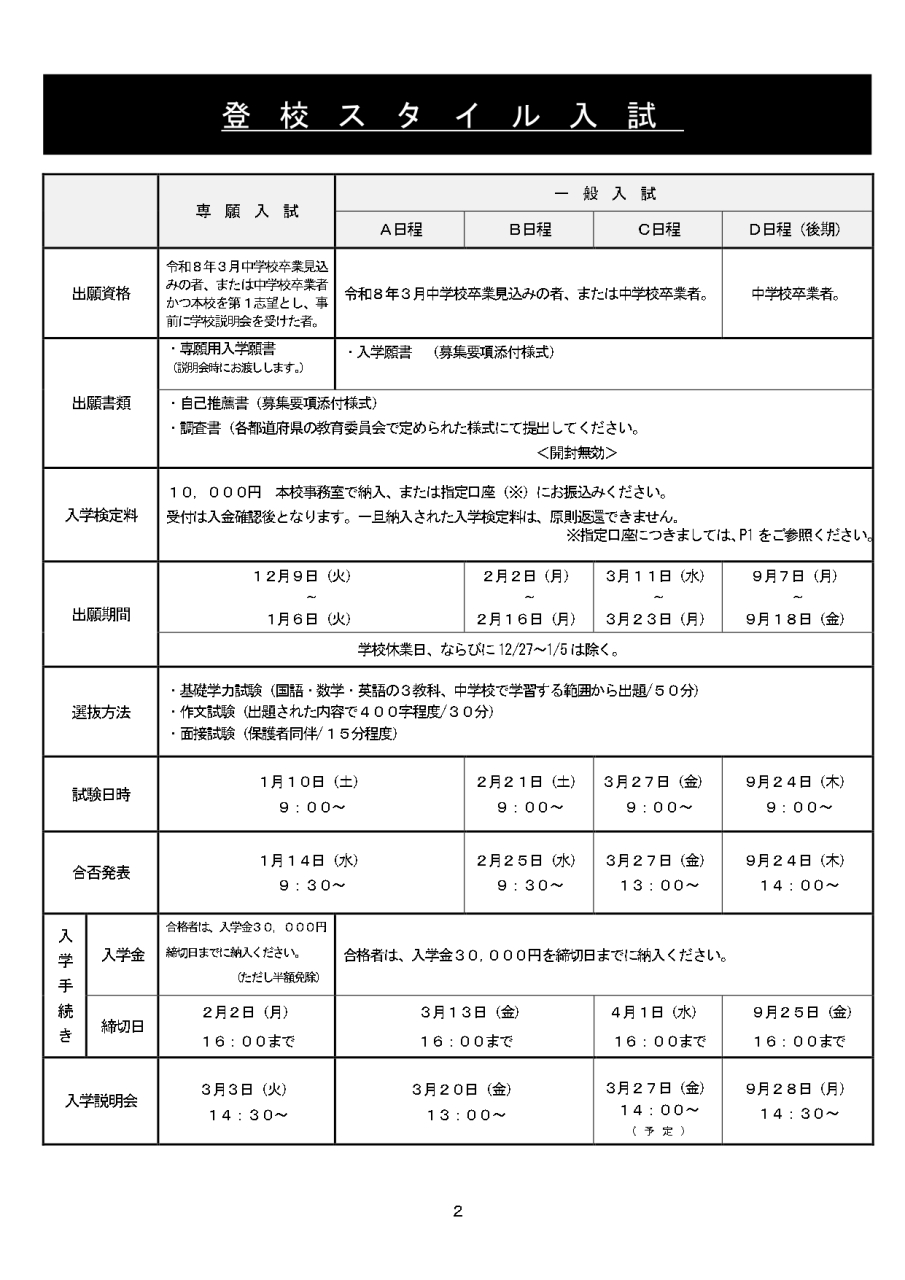 月曜日から金曜日までの週5日の登校で、1日4時間のゆとりのある時間割です。金曜日には様々な体験学習を行います。